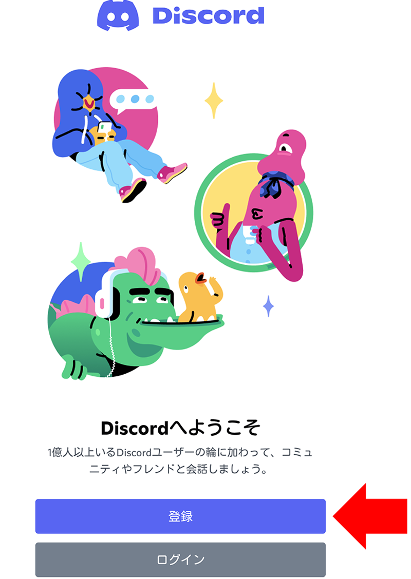 5. Discordを初めて使用する方は、「登録」ボタンを押してください。