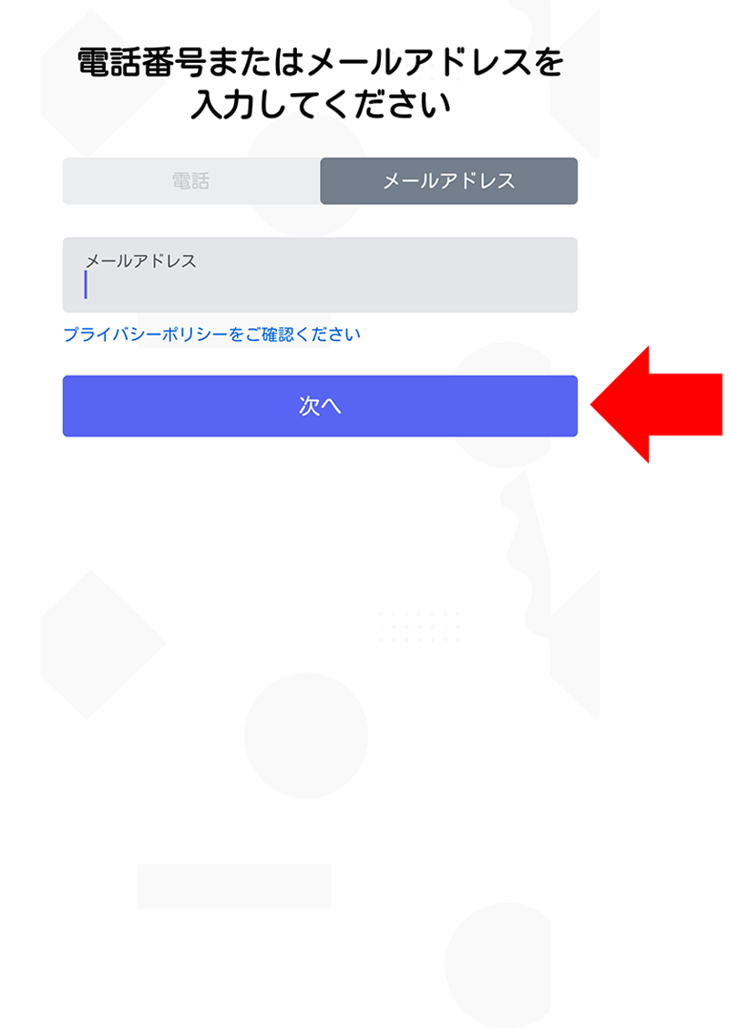 6. 電話番号またはメールアドレスを入力し、「次へ」を押します。