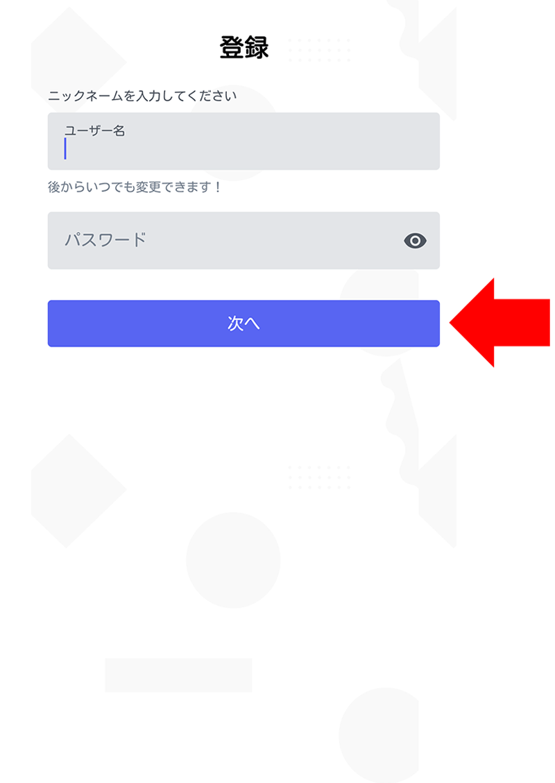7. 「ユーザー名」とDiscordのログイン時に使用したい「パスワード」を入力し、「次へ」を押します。